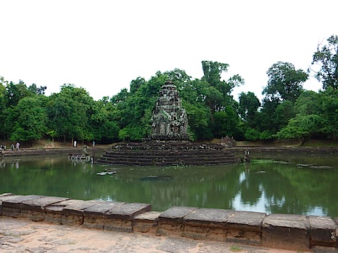 さて、ようやくニャック・ポアン。中央に聖池があり、東西南北に4つの池がつながる。中央からそれぞれに水が流れ出し、それが病を癒したのだという。周囲には薬草が生え、療養所のような役割を果たしていたのだという。今は近所の子どもたちが泳いで遊ぶ。