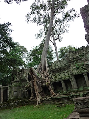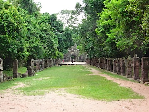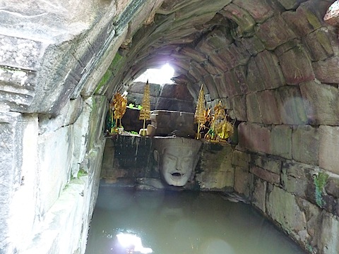 4方向の池への吐水口には、それぞれ獅子、牛、人間、象の面が模られ、口から水が出る仕掛けになっていたという(今は流れない)。高度な治水技術があってこそ成り立つ遺跡であり、かつて水を操って王国となしたクメール王朝の栄華を伝えるものなのだろう。